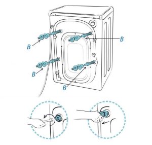 پشت ماشین لباسشویی و ظرفشویی چند تا پیچ مخصوص وجود داره که فقط برای حمل دستگاه استفاده میشن.